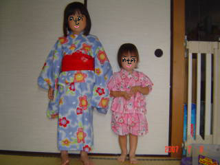 ぴよ子が浴衣を着たら、ちび子も「きたい」というので、ちび子には甚平を着せました。