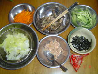 1、上に乗せる具を、食べやすいようにしておきます。