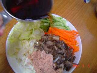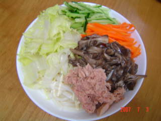 ツナ缶の代わりに、豚肉の冷しゃぶも合うと思います。