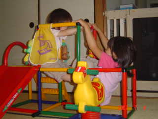 ぴよ子が2歳半になる頃には、脚力も大分付いて、降りずに上りきることができていました。