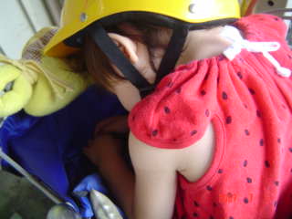 すっぽりと、子乗せ自転車のカゴに納まっていますw