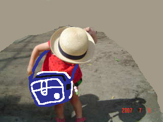 ちび子にカバンと帽子を渡したら、