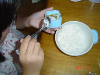 ちび子は、喜んで1皿分を食べてしまいました。^^