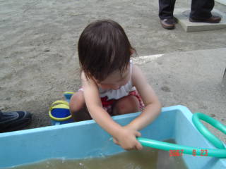 今日は暑かったので、ぴよ子達園児は、早速プールでした。
