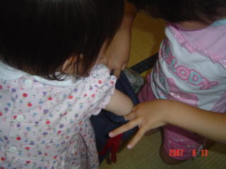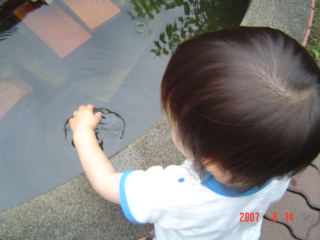 それから、池の方に行って、池に手を突っ込んで遊んでました。--;;
