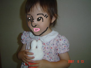 ゲーセンで取ったミッフィーを持つぴよ子。