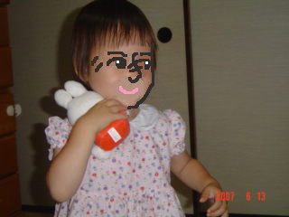 ちび子は誕生日プレゼントのミッフィーを持ったまま走り回り、