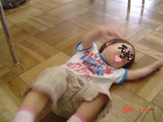 1時20分頃、ようやくちび子をおんぶからおろしました。