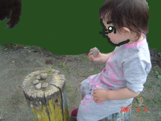 そのうちぴよ子が、この杭を机にして、