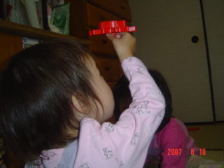 ぴよ子とちび子が仲良くブロック遊びをしていたので、