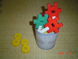 ちび子とぴよ子はブロックでお店屋さんごっこをしてました。