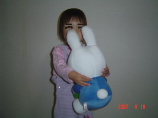 ちび子が抱くと、…頭の大きさで負けてますw