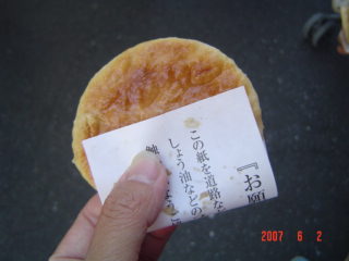 途中、あつあつの手焼き煎餅が、
