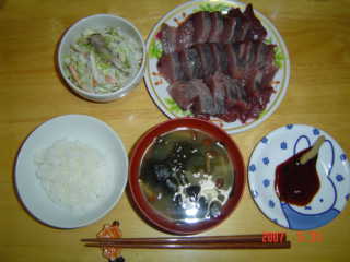 昨日のサラダの残りと、メンチカツ丼で終わりです!