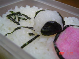 りんごの下はゆかりご飯で、マイメロの顔の中は鮭フレークです。