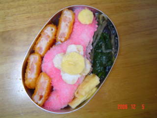 ピンクは桜でんぶで、黄色は薄焼き卵。