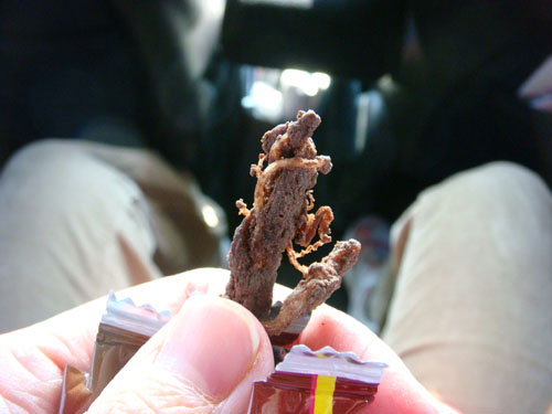 さきいかにチョココーティング…というより染みチョコ。