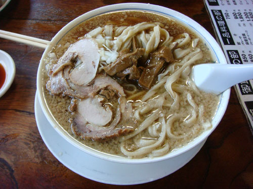麺は極太でモチモチの歯ごたえ。