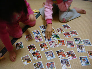 ヨーコがさくさく札を取り、チーコは全く取れないので、