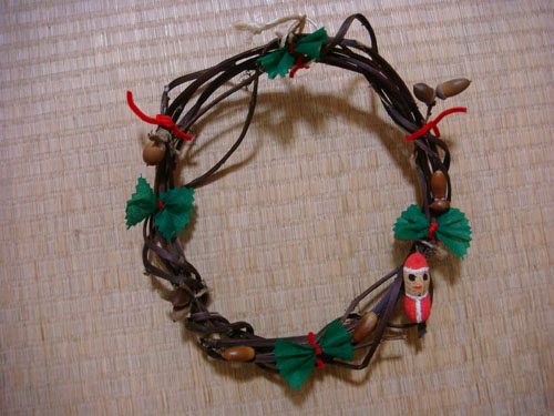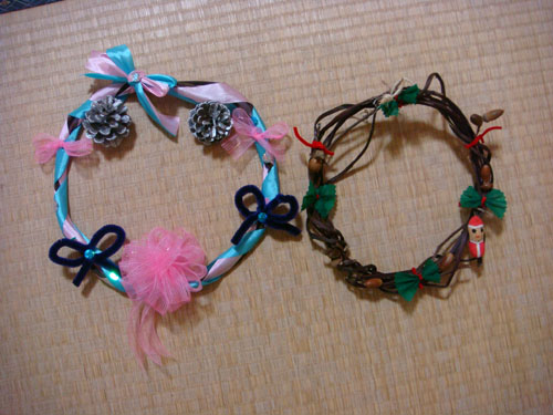 行って早速、クリスマスのリース作り。