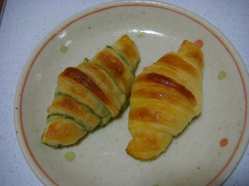 左が抹茶クロワッサンで、右がカスタードクロワッサン。