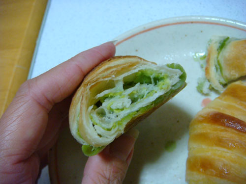 抹茶クロワッサンの断面。