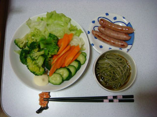 あとは、ウインナー3本、茶そば(おかわり自由)。