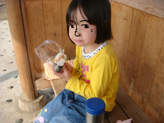 持参したおにぎりで昼食です。