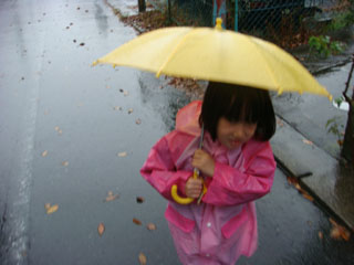 チーコに聞いたら「行く!」と言うので、雨の中幼稚園へ行く事にしました。
