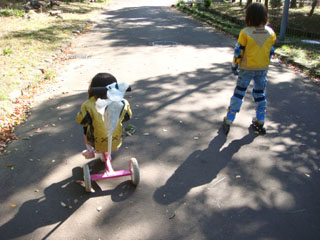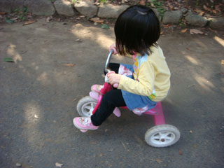 ゆっくり休んでから、公園へ三輪車の練習をしに行く事にしました。