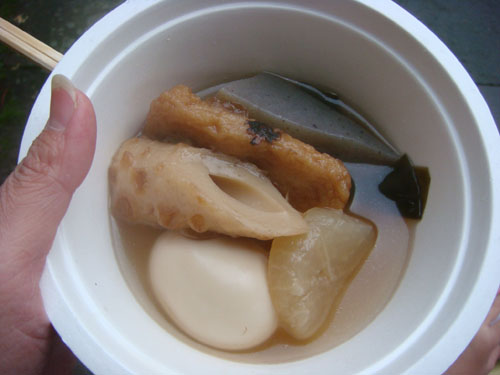 かけ小(105円)と、さつまいも天(105円)