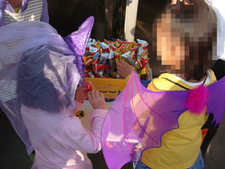 「トリックオアトリート」と言って、お菓子をもらいました。