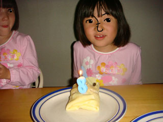 ヨーコは自分の好きなデザートを自分で巻いて喜んで食べてました。