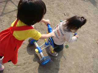 今日は、昨日メールをもらった事もあり、まーちゃんの幼稚園の園庭開放へ行きました。