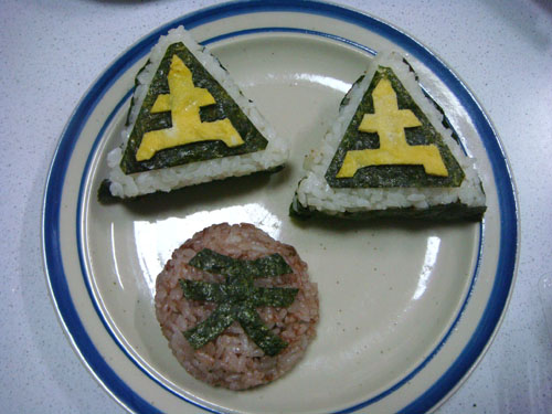 ←丸い形のおにぎりが亀折神(@シンケンジャー)