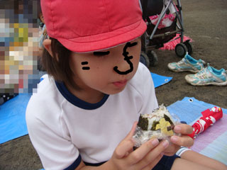 それを三角おにぎりに貼り付ければ、できあがり。