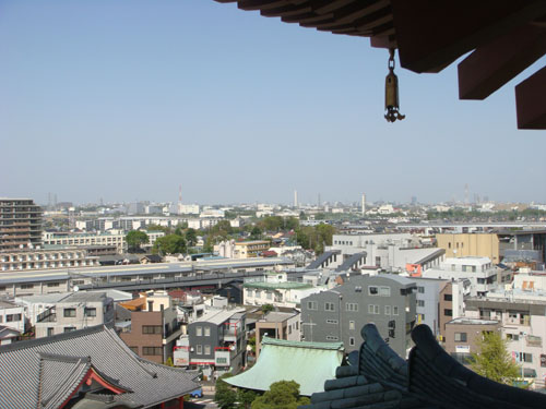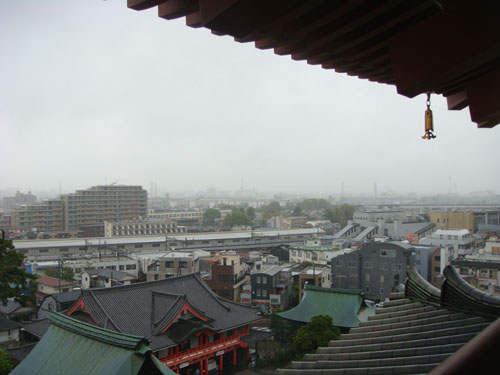 あいにくの雨で、せっかく五重塔に上ったにもかかわらず、遠くの景色まで見えませんでした。