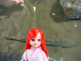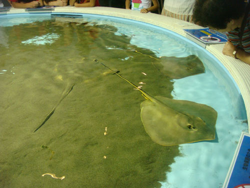 時間限定で、生きているエイやサメに触ることができました。