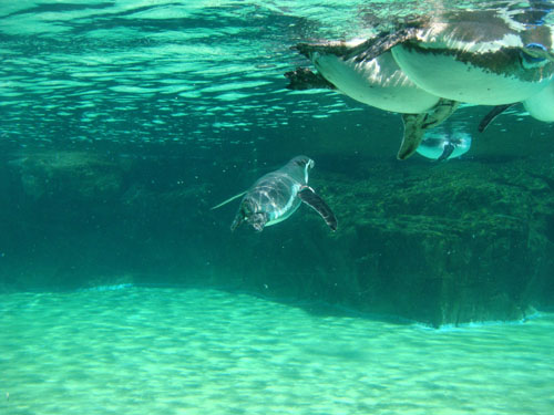 水中を泳ぐペンギン。
