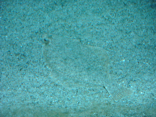 水槽の底で隠れているカレイ。
