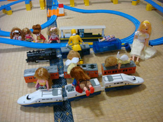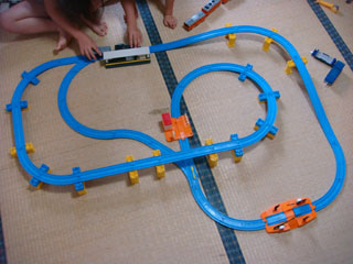 ヨーコが割りと複雑にレールを組んでいました。