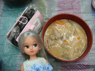 ヨーコに別のゼリーをくれました。お茶のゼリーでした。