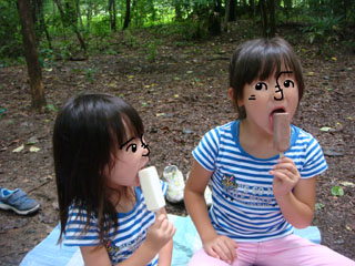 凍らせたチューペットを食べてクールダウン。