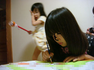 その時、テーブルにぶつかったり、画用紙にぶつかったり。