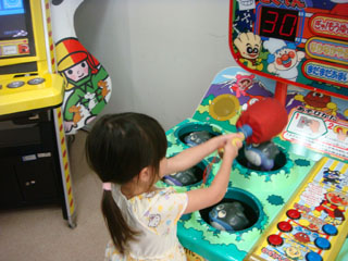 チーコが選んだのは、もぐら叩きならぬ、バイキンマン叩き。
