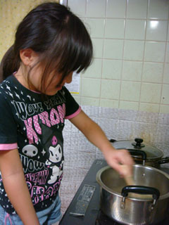 子供達も、自分の分は自分で突きました。