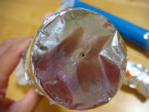 穴の方を太陽に向け、レジ袋の方を見ると、