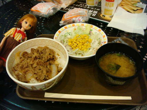 ちなみに、私はすき家の牛丼(味噌汁サラダセット)