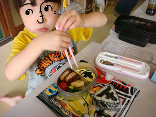 チーコ、お楽しみのシンケンジャー弁当です。