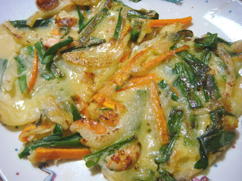 夕食にチヂミを作りました。